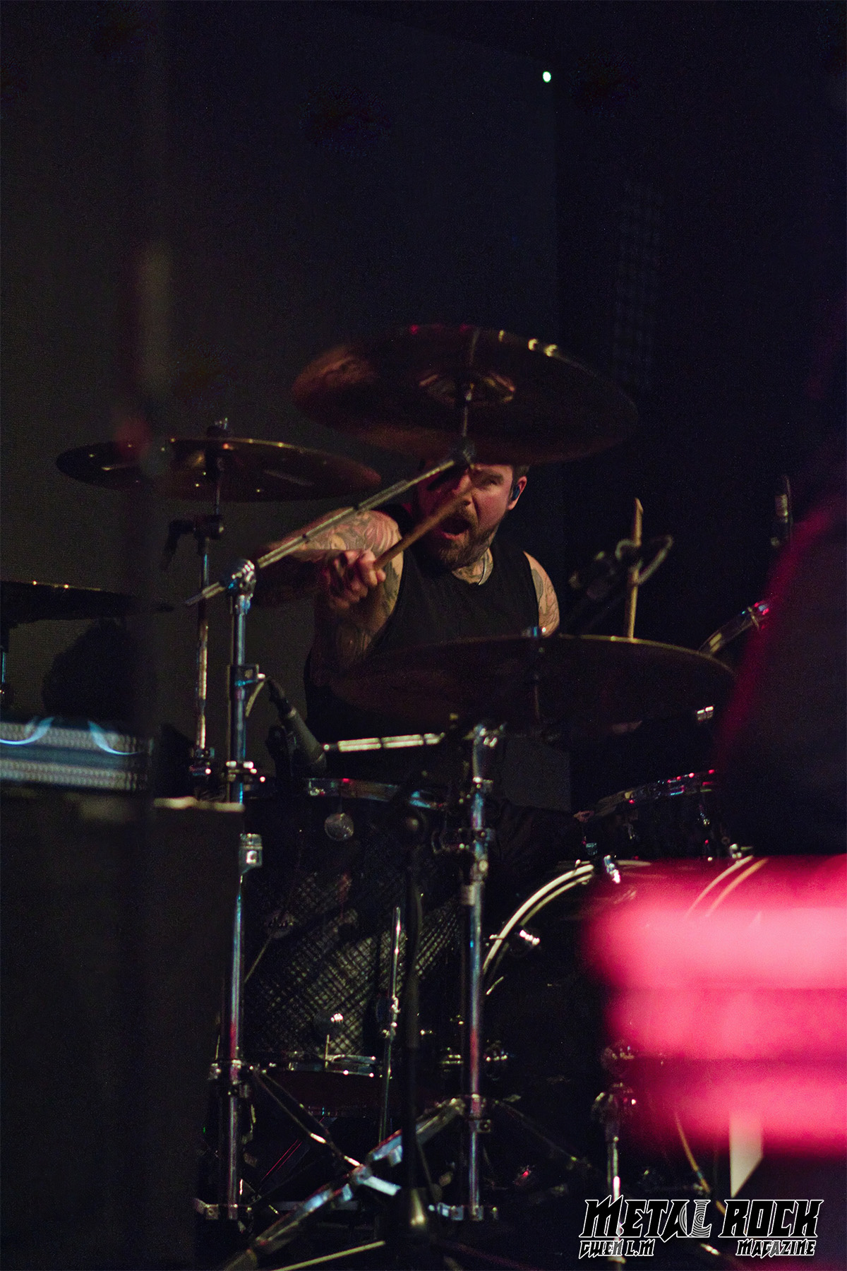 Dès les premières minutes, la présence scénique est impressionnante. Le groupe maîtrise parfaitement son show, porté par un jeu de lumières particulièrement travaillé qui sublime chaque moment. Dans la fosse, l’ambiance est tout simplement folle : le pit est en ébullition et le public reprend les refrains à pleins poumons.